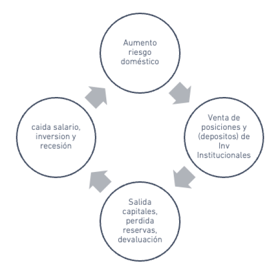 Una posible canal entre el sector externo y la fragilidad financiera podría tener que ver con la mencionada relación entre los flujos de capitales, el tipo de cambio y la percepción endógena de riesgos mediante el llamado efecto nefti-frenkel. (Frenkel, 1983; Nefti, 1983). Un segundo canal tiene que ver la falta de regulación y el excesivo apalancamiento externo. Frente a una devaluación, el peso de la deuda aumenta considerablemente, llevado a la quiebra a bancos y empresas (Kregel, 1998; Arestis y Glickman, 2002; Agosin y Huaita, 2011; Bastourre y Zeolla, 2016).