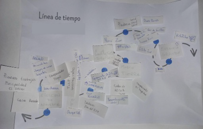 4 En la línea de tiempo realizada en el taller colectivo, los miembros comentaron que sus primeros trabajos los realizaron para la Municipalidad de la localidad de El Volcán.